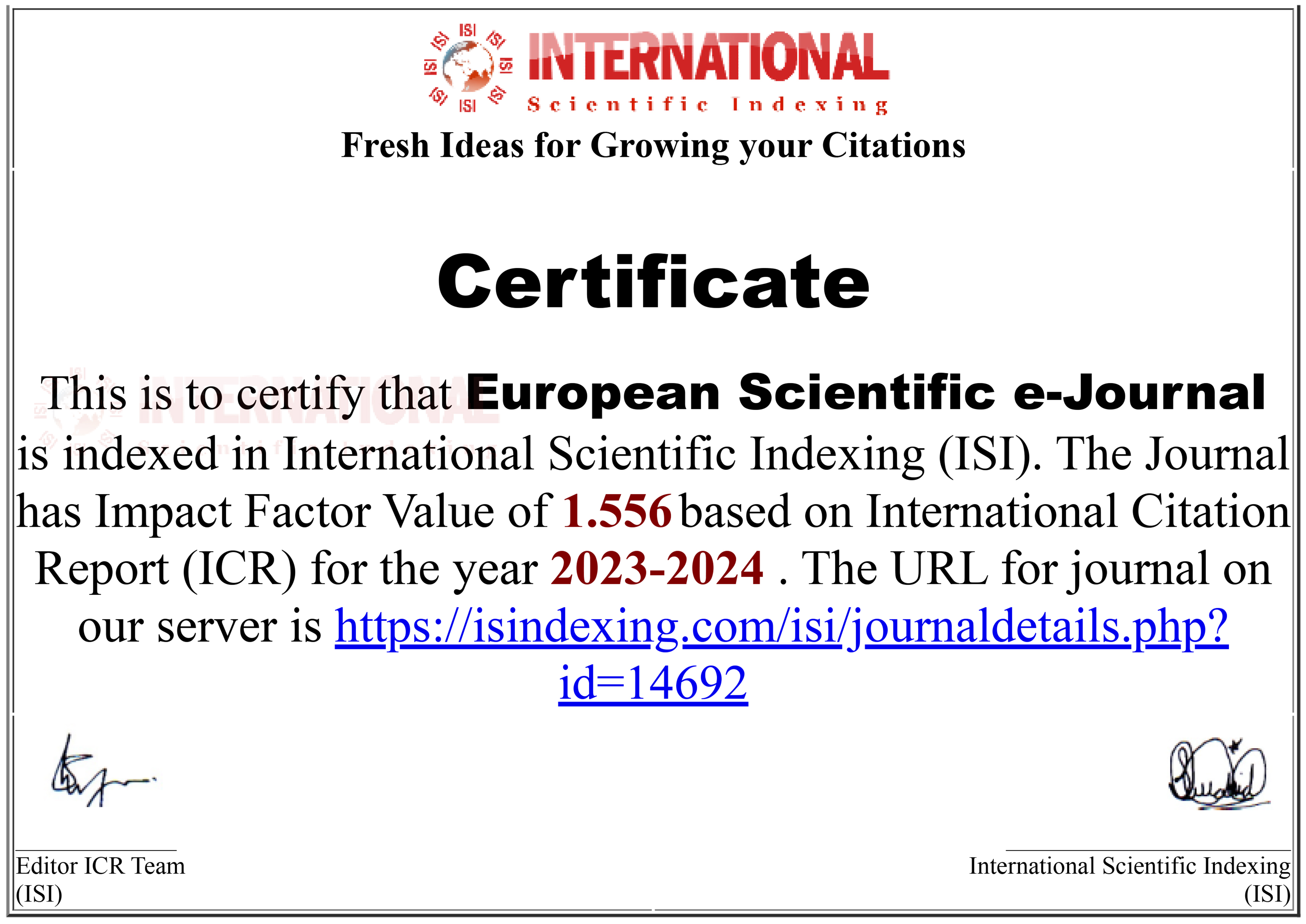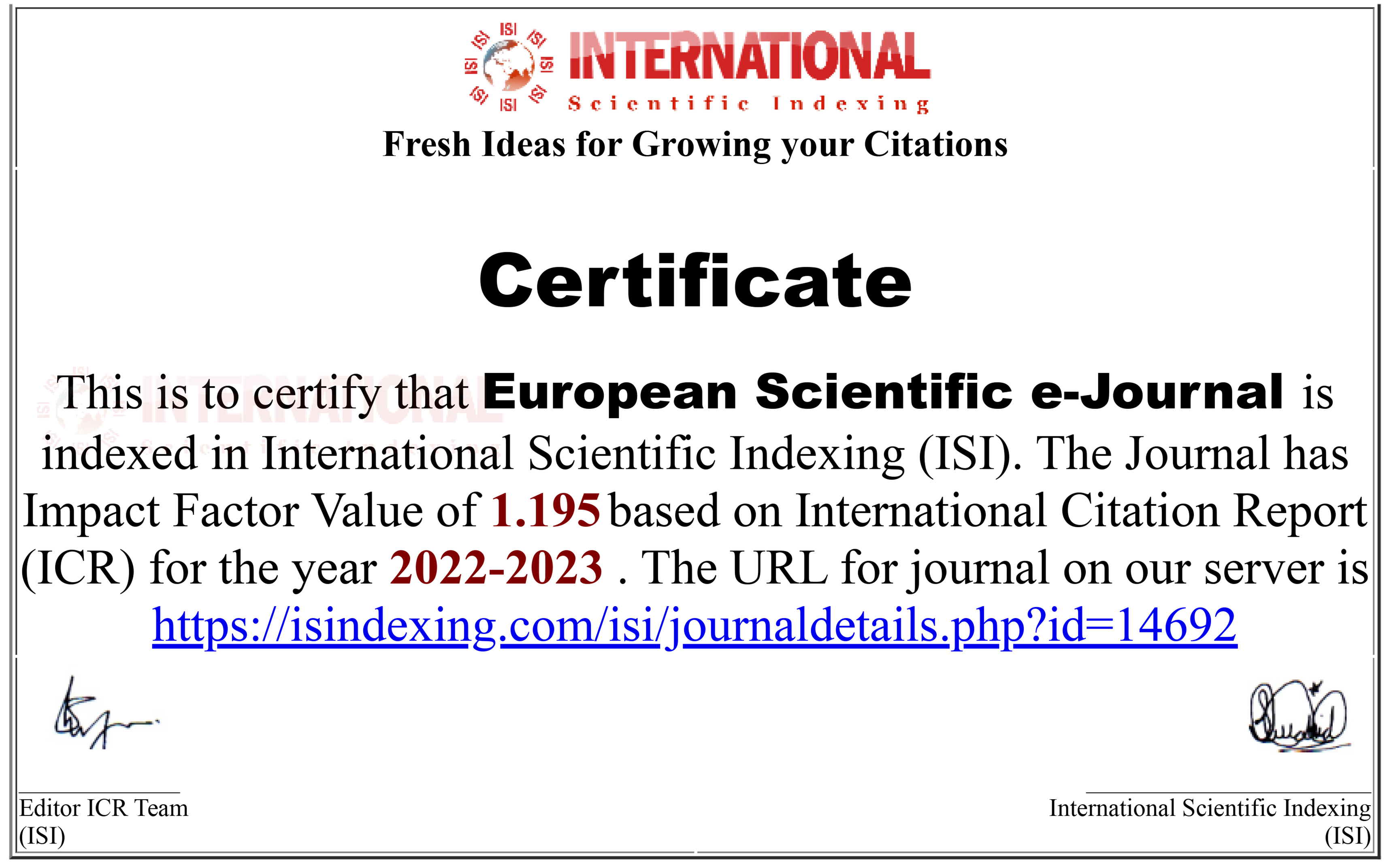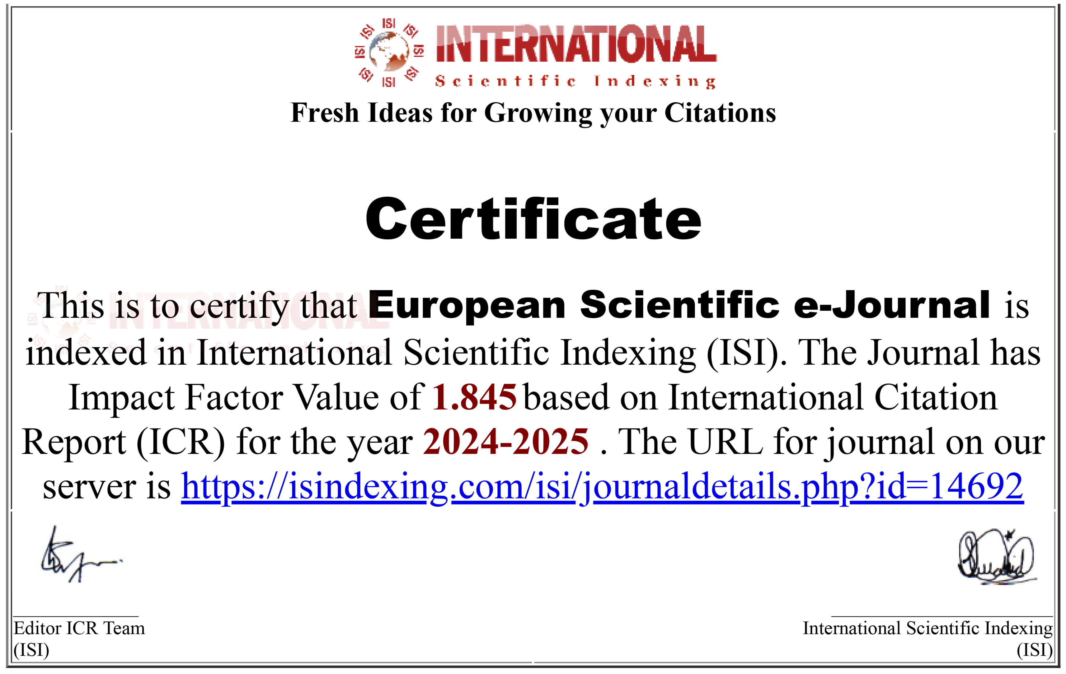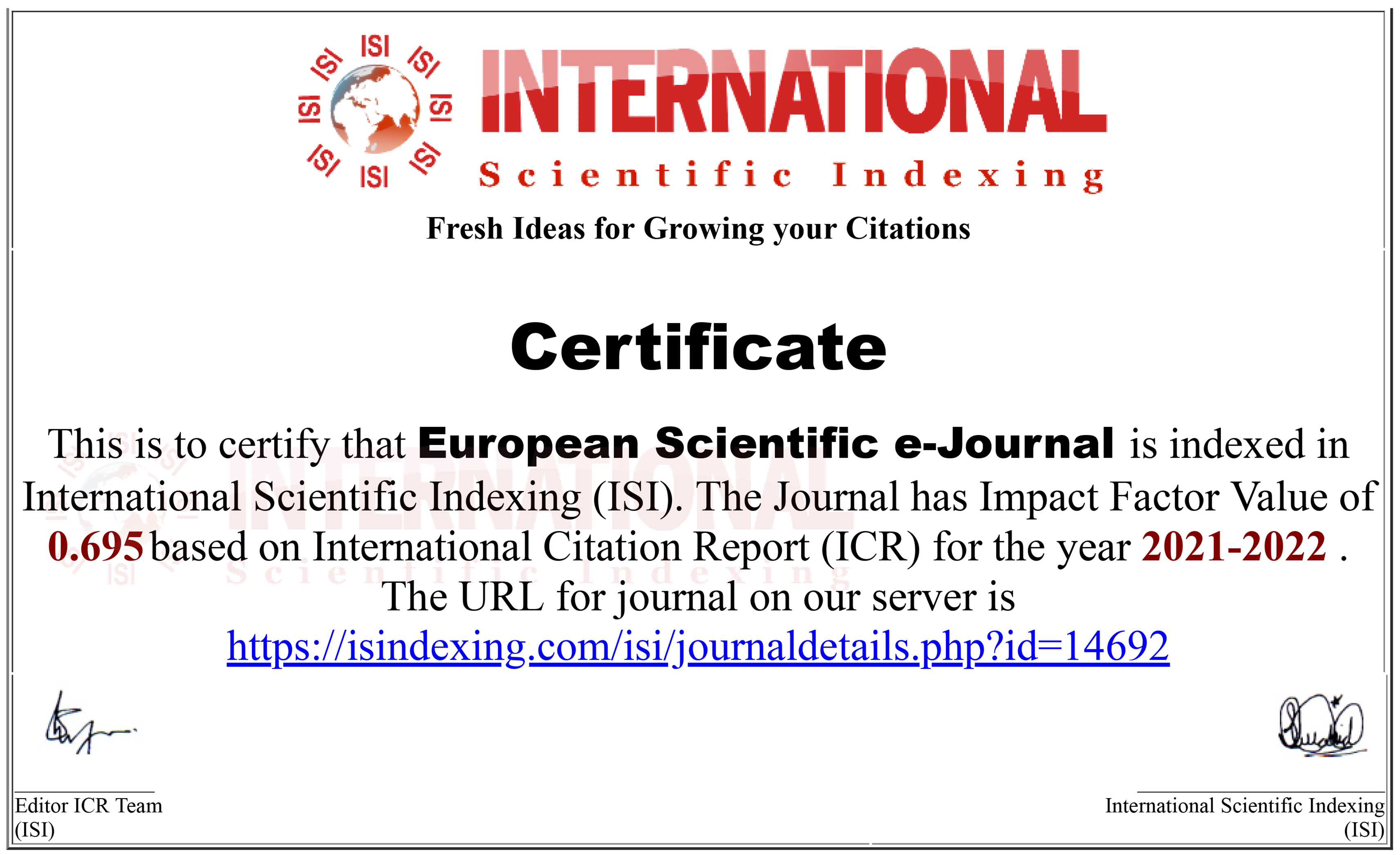 European Scientific e-Journal: Citation Index