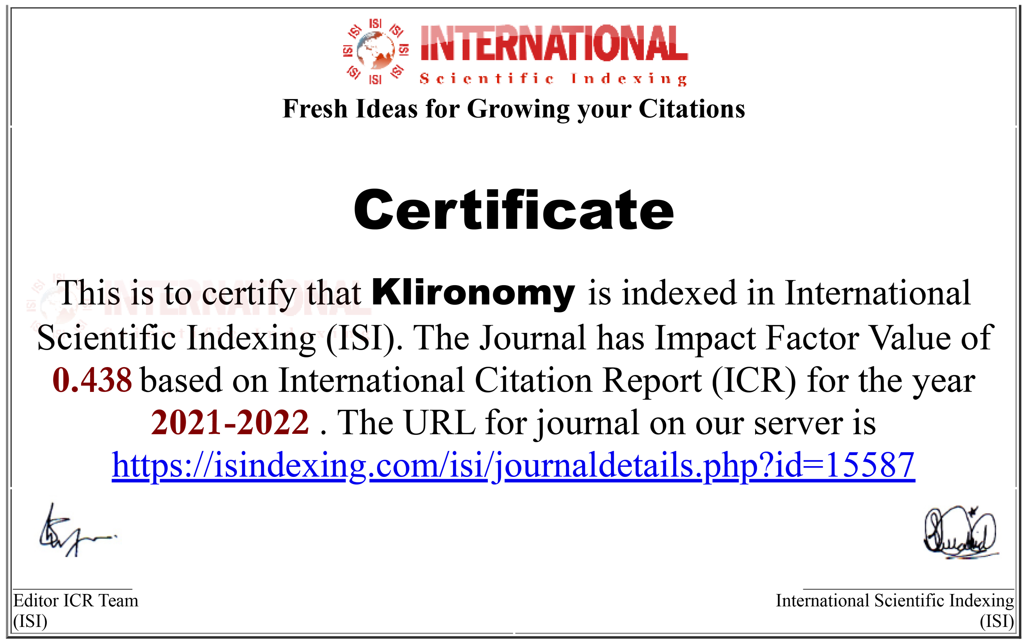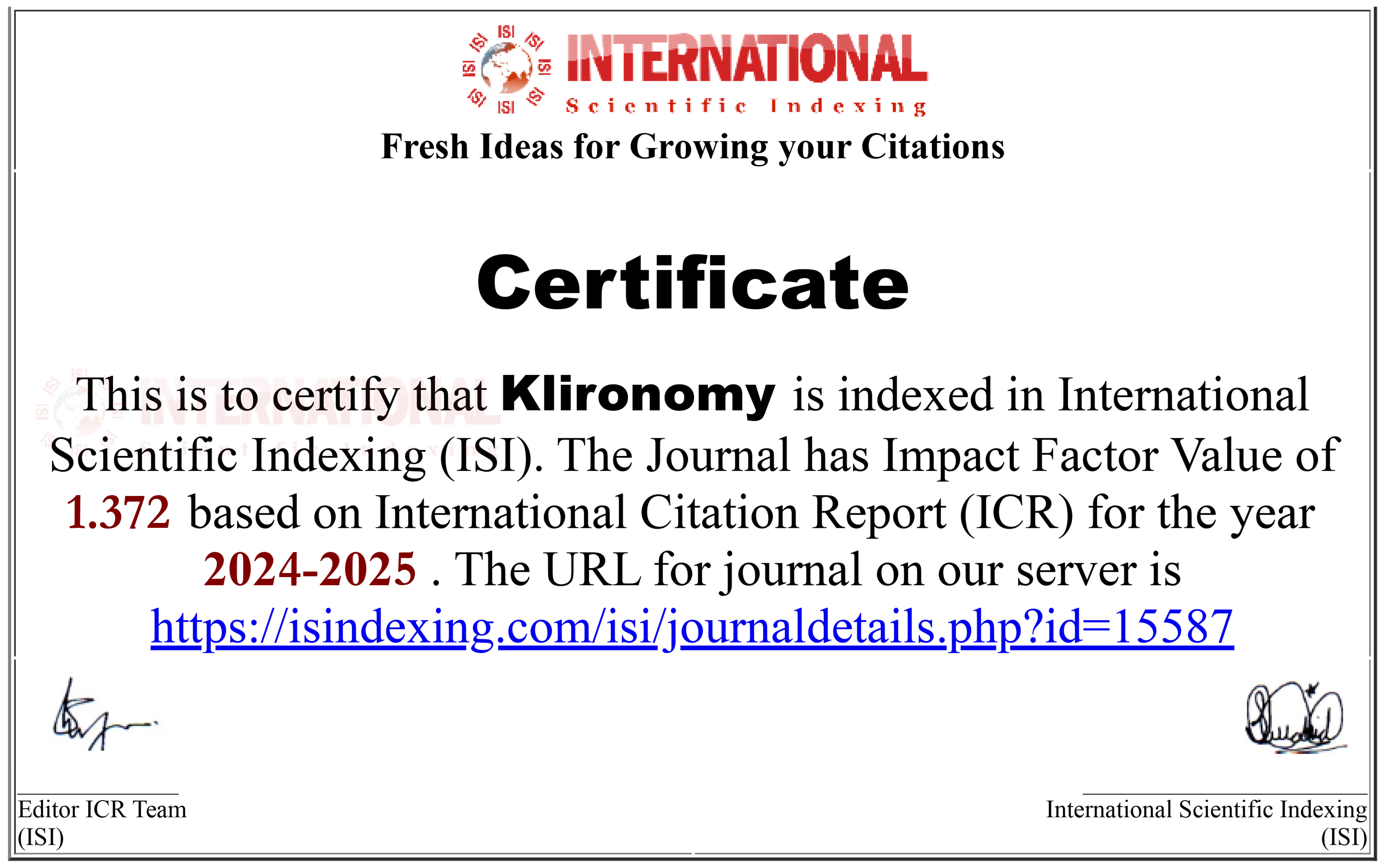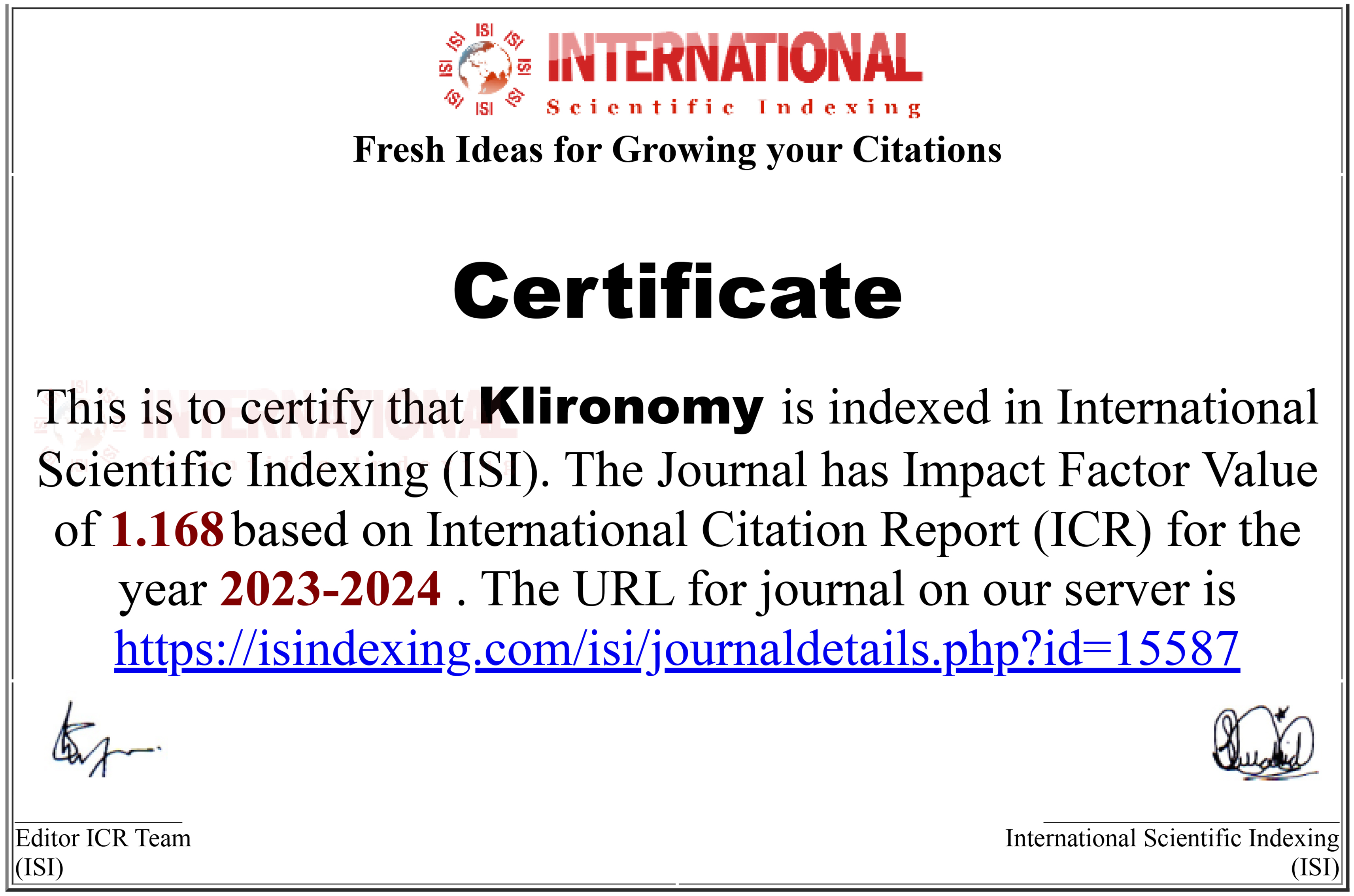 Klironomy: Citation Index